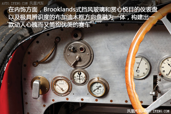 Type 37完美演绎了驾驶者的浪漫理念:真正优秀的车型应该能够驶上赛道,争雄逐鹿,然后在黑夜中悄然驰回家中。此外这款车还配备了侧翼、大灯等实用附件。在内饰方面,Brooklands式挡风玻璃和赏心悦目的仪表盘以及极具辨识度的布加迪木框方向盘融为一体,构建出一款动人心魄而又简约优美的赛车。